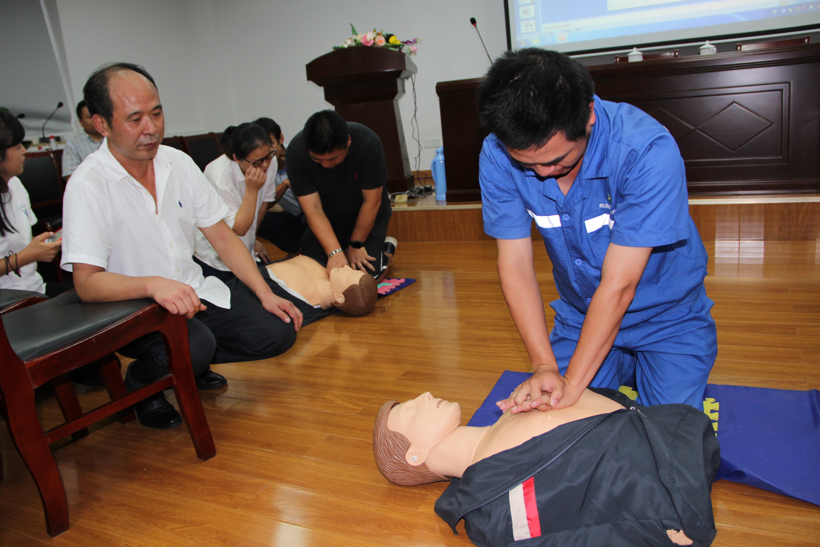 2018年9月20日,公司派生產(chǎn)一線員工代表參加集團“?;稹苯M織的急救知識講座,現(xiàn)場學習模擬操作心肺復蘇等急救措施。