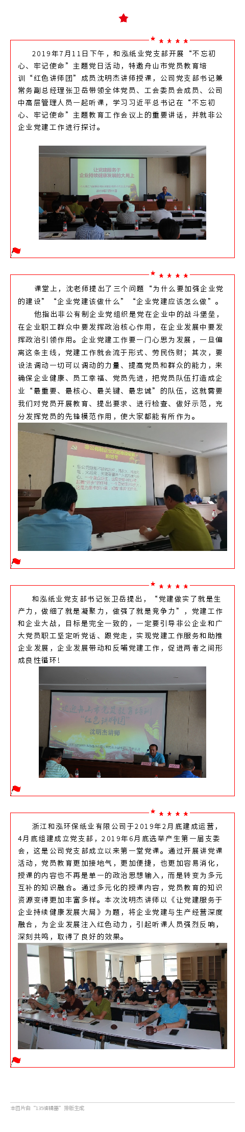 聽紅色講師講黨課 和泓紙業(yè)黨支部開展主題黨日活動