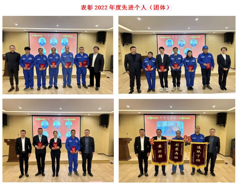 “百舸爭流齊奮進,榜樣引領(lǐng)勇爭先”。2022年度和泓紙業(yè)涌現(xiàn)了一批表現(xiàn)優(yōu)異的先進。會上,由集團總裁林剛、公司總經(jīng)理應紅波等領(lǐng)導為2022年度先進員工、先進管理者、先進部門、先進班組、安全班組、先進黨員和先進工會工作者頒發(fā)了榮譽證書和獎金,希望受表彰的個人和團體再接再厲、不斷進取、再創(chuàng)佳績,全體員工要以先進為榜樣比學趕超、爭先創(chuàng)優(yōu)。