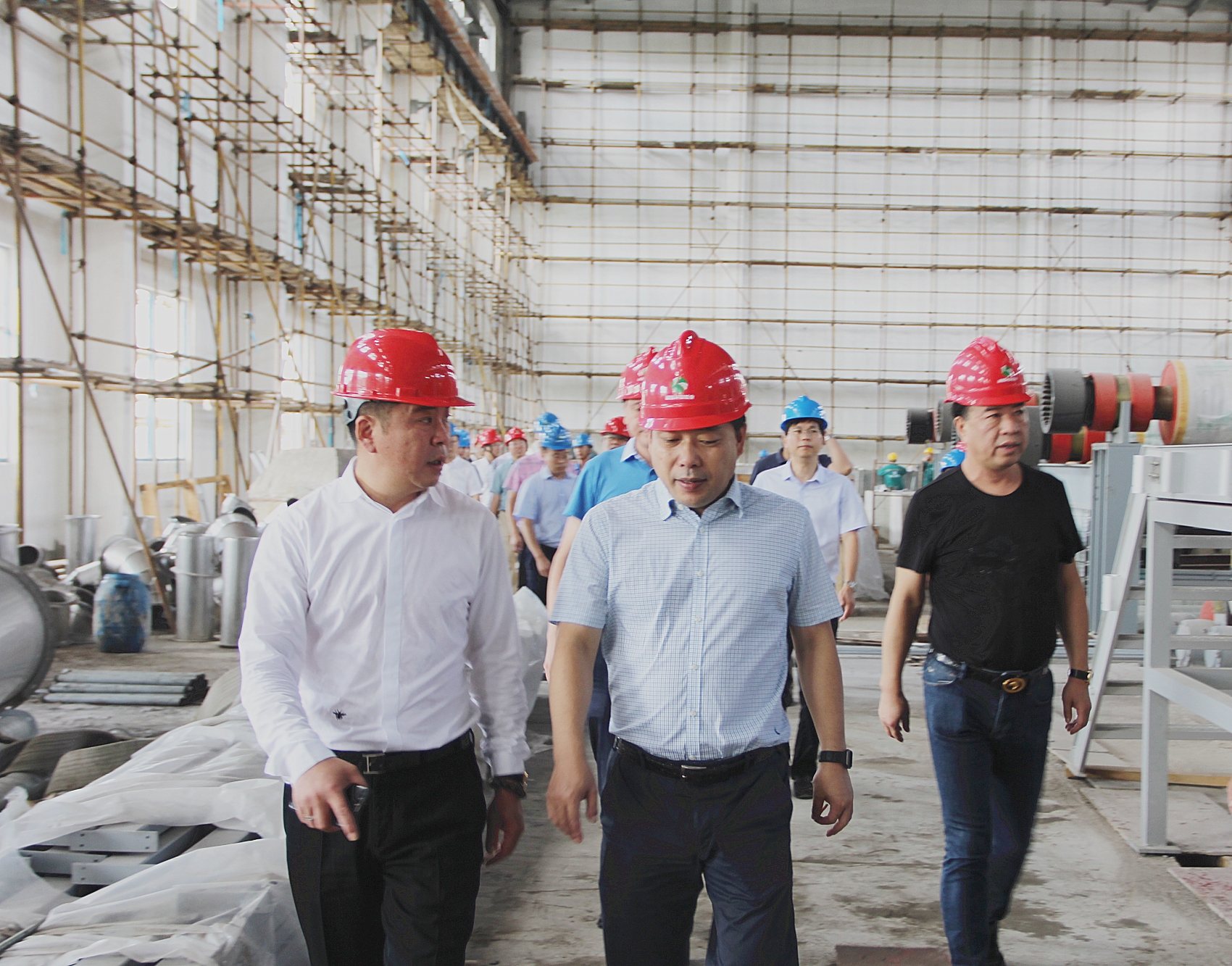 毛鐵年一行首先來(lái)到項(xiàng)目工地,參觀(guān)正在建設(shè)中的和泓環(huán)保紙業(yè)年產(chǎn)20萬(wàn)噸高強(qiáng)瓦楞原紙項(xiàng)目造紙、制漿等一線(xiàn)生產(chǎn)車(chē)間,實(shí)地考察了解企業(yè)項(xiàng)目建設(shè)進(jìn)度。