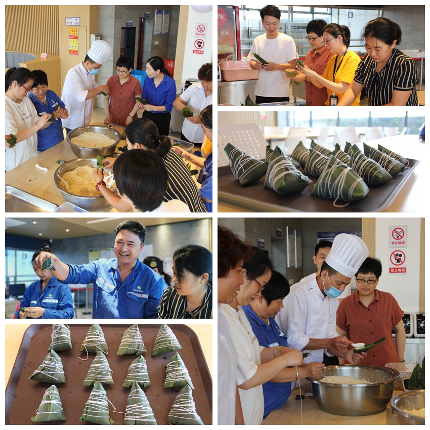 活動(dòng)現(xiàn)場(chǎng),工作人員把提前泡好的糯米、蜜棗、鮮肉、粽葉等材料整齊擺放在桌上。大家圍在一起,紛紛拿出看家本領(lǐng)。在專業(yè)大廚的指導(dǎo)下,同事們邊看邊學(xué),踐行操作,直至熟練掌握包粽技巧。2小時(shí)后,形態(tài)各異、飽含祝福的粽子呈現(xiàn)在我們面前。此次活動(dòng),既鍛煉了大家的動(dòng)手能力,又增進(jìn)員工了解中國(guó)傳統(tǒng)文化的興趣?,F(xiàn)場(chǎng)歡聲笑語(yǔ),其樂(lè)融融。