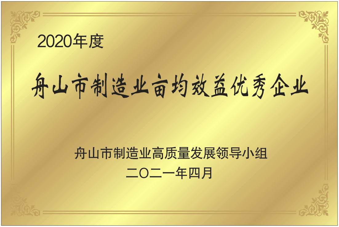 我司被評(píng)為“2020年度舟山市制造業(yè)畝均效益優(yōu)秀企業(yè)”