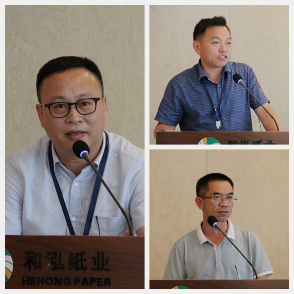 會上,董事長謝海常宣讀了公司高層職務(wù)任免文件。新任公司高層管理人員總經(jīng)理兼和泓紙業(yè)印度科技有限公司總經(jīng)理、和泓貿(mào)易澳門有限公司(舟山和泓貿(mào)易公司)總經(jīng)理應(yīng)紅波,副總經(jīng)理兼和泓環(huán)保紙業(yè)有限公司(舟山)基地總經(jīng)理鄒金艷,和泓紙業(yè)印度科技有限公司生產(chǎn)副總經(jīng)理兼和泓環(huán)保紙業(yè)有限公司(舟山)基地總工程師、生產(chǎn)技術(shù)部經(jīng)理李廷盛依次進行就職發(fā)言。