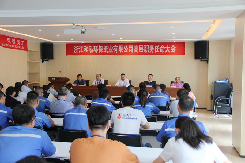 7月3日下午,浙江和泓環(huán)保紙業(yè)有限公司召開高層職務(wù)任命大會。公司董事長謝海常、副董事長解延海及公司中高層領(lǐng)導(dǎo)、員工代表參加會議。