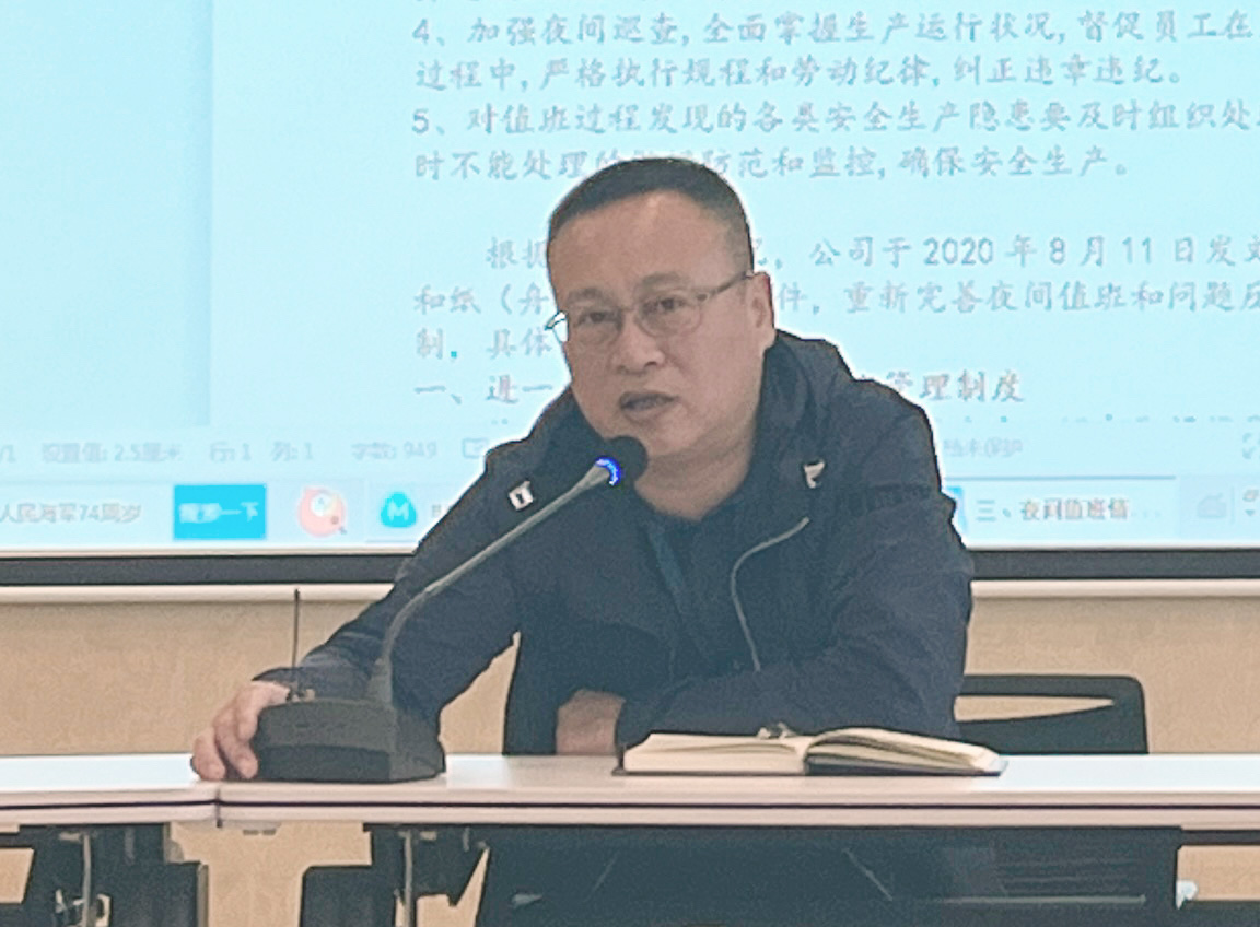 安環(huán)部整合部門力量、強(qiáng)化各部門聯(lián)動,聯(lián)合消防維保單位對公司所有消防設(shè)施進(jìn)行全面檢查,減少安全隱患,對存在的問題堅(jiān)決按要求予以整改到位,絕不遺漏。完善《夜間值班制度》,值班人員嚴(yán)格按照要求填寫夜間值班記錄表;同時(shí),強(qiáng)化日常巡查,對配電房、成品倉庫等重點(diǎn)區(qū)域進(jìn)行嚴(yán)格管控,杜絕安全事故的發(fā)生,確保工作出實(shí)效。