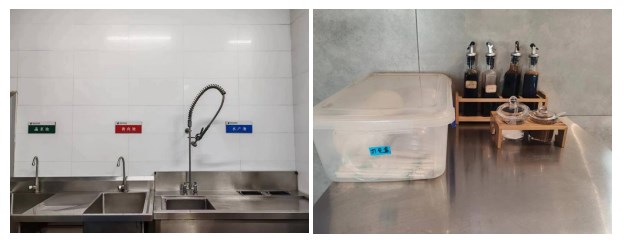 在公司食堂推行“6S”管理,嚴(yán)格落實(shí)整理、整頓、清掃、清潔、素養(yǎng)、安全六項(xiàng)制度。食堂每個(gè)工作人員都持健康證上崗,嚴(yán)格按照操作規(guī)范進(jìn)行操作;食堂管理人員認(rèn)真履行職責(zé),對(duì)每餐烹飪的菜品進(jìn)行留樣;保證食堂后廚環(huán)境衛(wèi)生整潔,做到倉庫各食品分類存儲(chǔ)擺放有序、大米離墻離地干凈整潔;標(biāo)志標(biāo)識(shí)清晰可見、工具擺放有序。