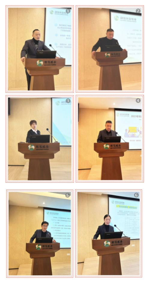 總經(jīng)理應紅波從生產(chǎn)經(jīng)營、安全環(huán)保、企業(yè)管理三個方面總結(jié)了公司2023年度生產(chǎn)經(jīng)營管理情況。2023年,公司通過創(chuàng)新新思路、開發(fā)新產(chǎn)品、投入新設備、采用新工藝、調(diào)整生產(chǎn)結(jié)構(gòu)等舉措積極應對市場挑戰(zhàn)。2023年生產(chǎn)以低克重產(chǎn)品為主,全年產(chǎn)量16萬噸,銷售16萬噸,營業(yè)收入5億元;挖潛力降成本成效顯著,各項費用大幅下降;2023年新增“浙江省綠色低碳工廠、浙江省高新技術(shù)企業(yè)研究開發(fā)中心、舟山市清廉民企建設示范單位”等榮譽資質(zhì)。2024年,面對嚴峻的市場環(huán)境,總經(jīng)理希望全體干部員工做好充分準備,積極迎接挑戰(zhàn)。要求各部門緊緊圍繞公司的生產(chǎn)經(jīng)營管理目標,堅持“穩(wěn)中求進、以進促穩(wěn)、先立后破”的工作思路,在“調(diào)結(jié)構(gòu)、提質(zhì)量、增效益”上積極進取,不斷鞏固穩(wěn)中向好的基礎(chǔ),以咬定青山不放松的執(zhí)著精神將目標變?yōu)槊篮矛F(xiàn)實。