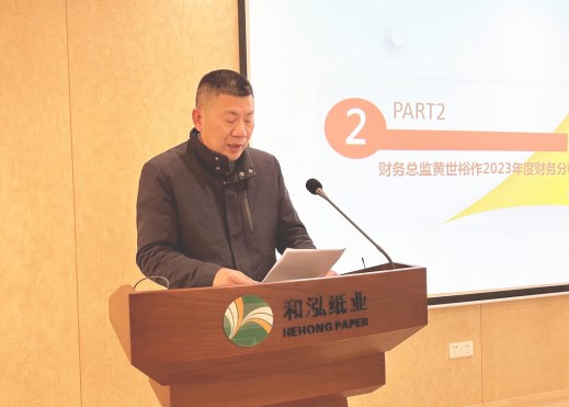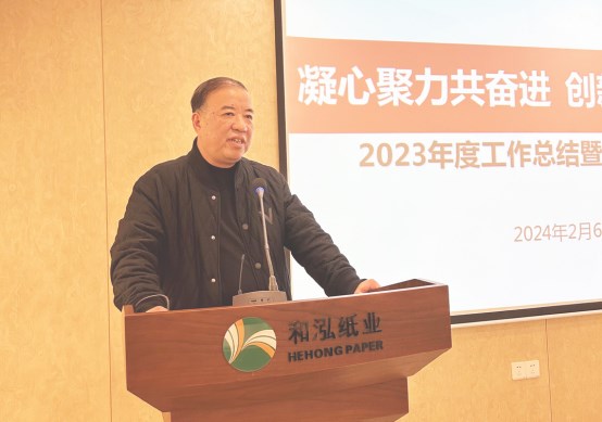 為全面總結(jié)2023年度工作、表彰先進并部署2024年度目標任務,2月6日下午,和泓環(huán)保紙業(yè)召開“2024年度工作會議”,公司董事長李善豐、總經(jīng)理應紅波等高層領(lǐng)導出席會議。各部門經(jīng)理、主管,生產(chǎn)班組長及先進代表近50人參加會議。
