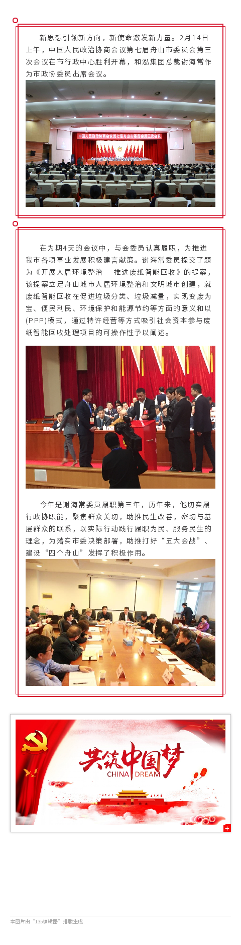 和泓集團(tuán)總裁謝海常出席舟山市政協(xié)七屆三次會(huì)議